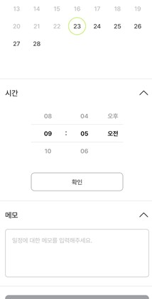 01시나 00분을 설정하기 위해 스크롤을 올리면 전체 스크린의 스크롤이 올라가고, 12시나 59분을 설정하기 위해 (물론 59분을 설정할 일은 없겠지만) 스크롤을 내리면 전체 스크롤이 내려가기 때문에, 테스트하는 과정에서부터 굉장히 불편했습니다.