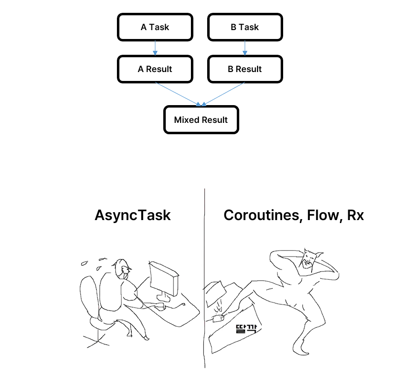 이 외에도 구성 변경 등에 의한 동일 작업의 중첩 및 이에 따른 별도 조치 필요, Memory Leak, Context Leak, 콜 백 누락 등, 해결하기 힘들고 Coroutines, Rx 의 존재로 인해 해결해야 할 마땅한 이유를 찾기마저 힘들어진 문제가 가득한 AsyncTask 는 그렇게 Deprecated 됩니다.