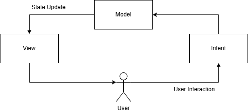 유저 인터랙션이 Intent 라는 이름의 일회성 객체로 ViewModel 의 Reducer 에 전달이 되고, 개발자의 의도에 따라 별도로 데이터가 필요하지 않은 경우에는 즉시 상태를 업데이트할 수 있습니다. 데이터가 필요하다면 DataSource(DB 접근, 네트워크 통신 등) 를 통해 데이터를 획득하고 이를 활용하여 상태를 업데이트하게 되고요.