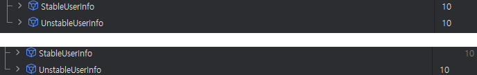 적용 전의 경우, StableUserInfo 및 UnstableUserInfo 모두 발생하지 않는 Recomposition 을 건너뛰지 않습니다. 앞서 기술한 바와 같이, 프로퍼티에 Unstable 한 타입 List<T> 를 갖고 있기 때문입니다.