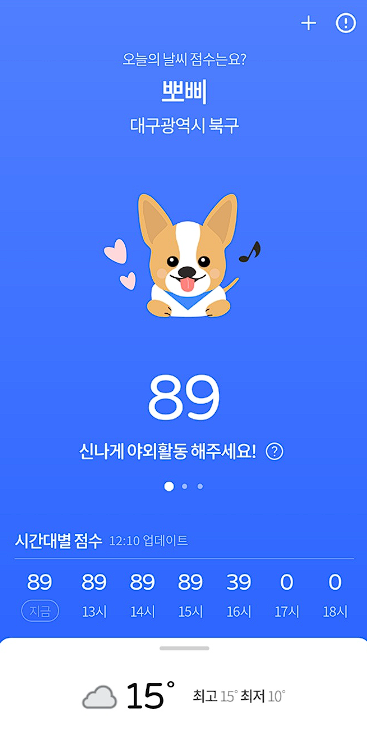 애견의 나이, 성별 및 종류와 특성을 입력하면 현재 날씨에 야외 활동을 진행하여도 되는 지에 대해 점수로 알려드립니다.
